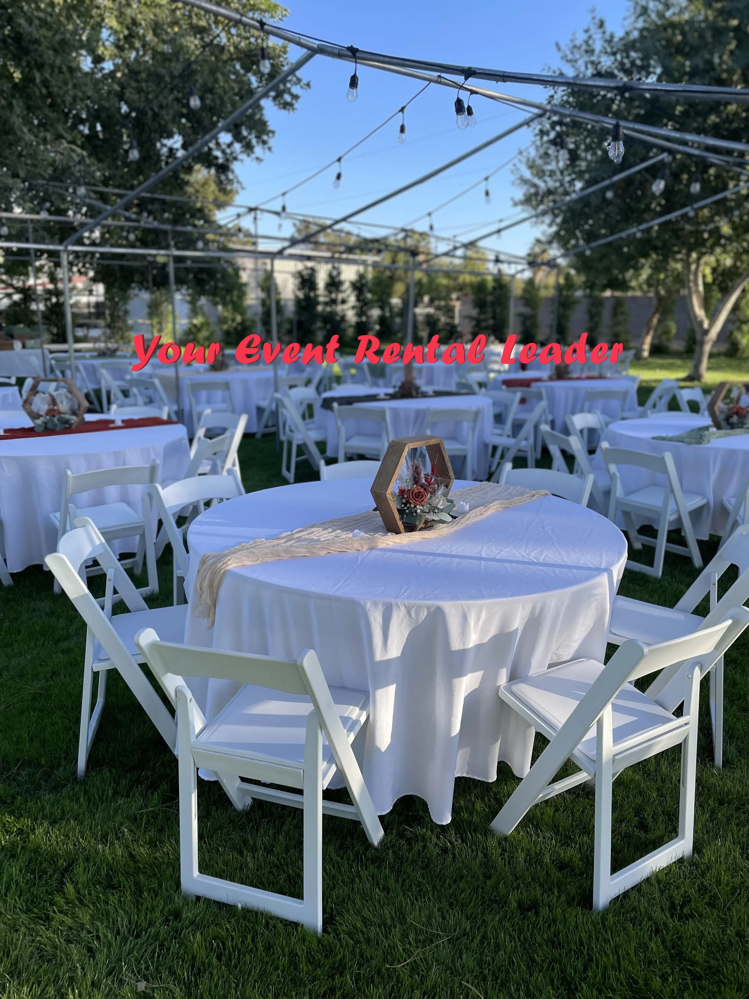 We provide tent rentals in Phoenix and surrounding areas for weddings, backyard parties, corporate events, festivals, and private gatherings. Our frame tents are clean, reliable, and perfect for creating comfortable event spaces. We have any size tent you could imagine.Tables, Chairs, and Event Rentals